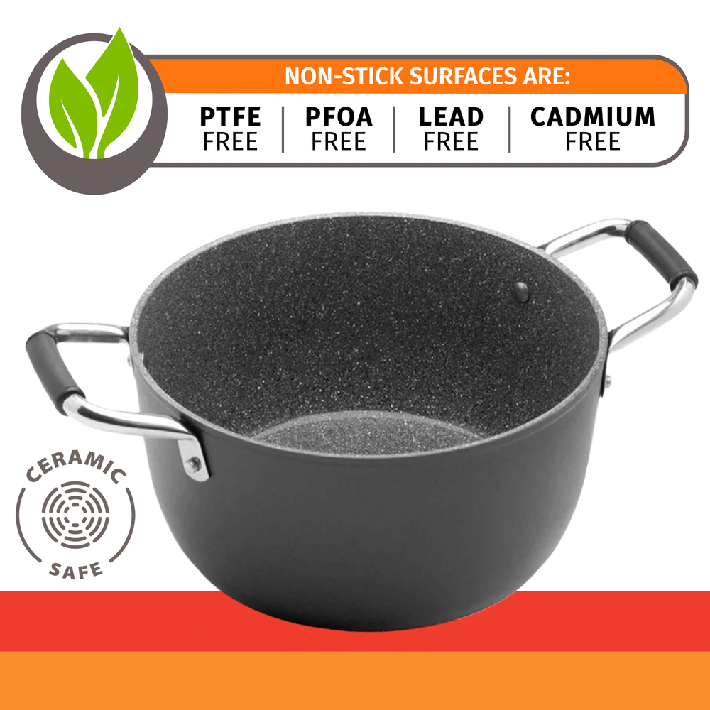 Zero Toxins- Natural volcanic minerals create a surface harder than steel itself. Toxin Free - Zero PFOA, PTFE, Lead, or Cadmium in every pot we make.